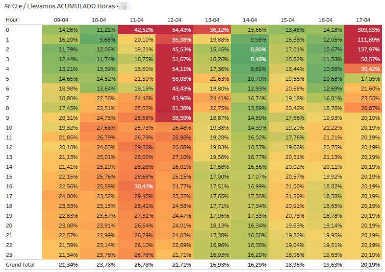 Un vistazo y ves si los miércoles siempre van peor que los martes, o si las tardes se deterioran en cuanto pasa la hora de corte de almacén.