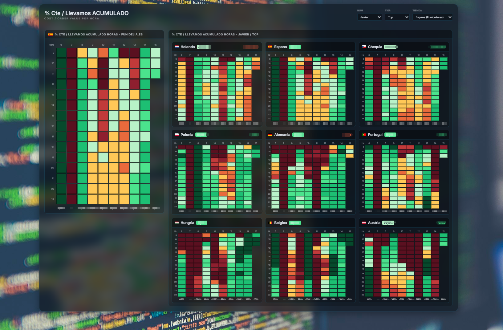 Mi equipo gestiona campañas para más de 20 e-commerce en paralelo. Cada uno con su ticket medio, su hora punta, sus transportistas, sus horas de corte, su estacionalidad.
