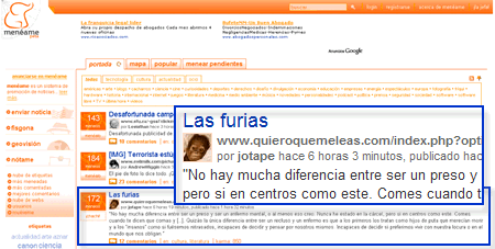 Como muestra la imagen, quieroquemeleas.com ya está dando que hablar y es portada de Menéame.